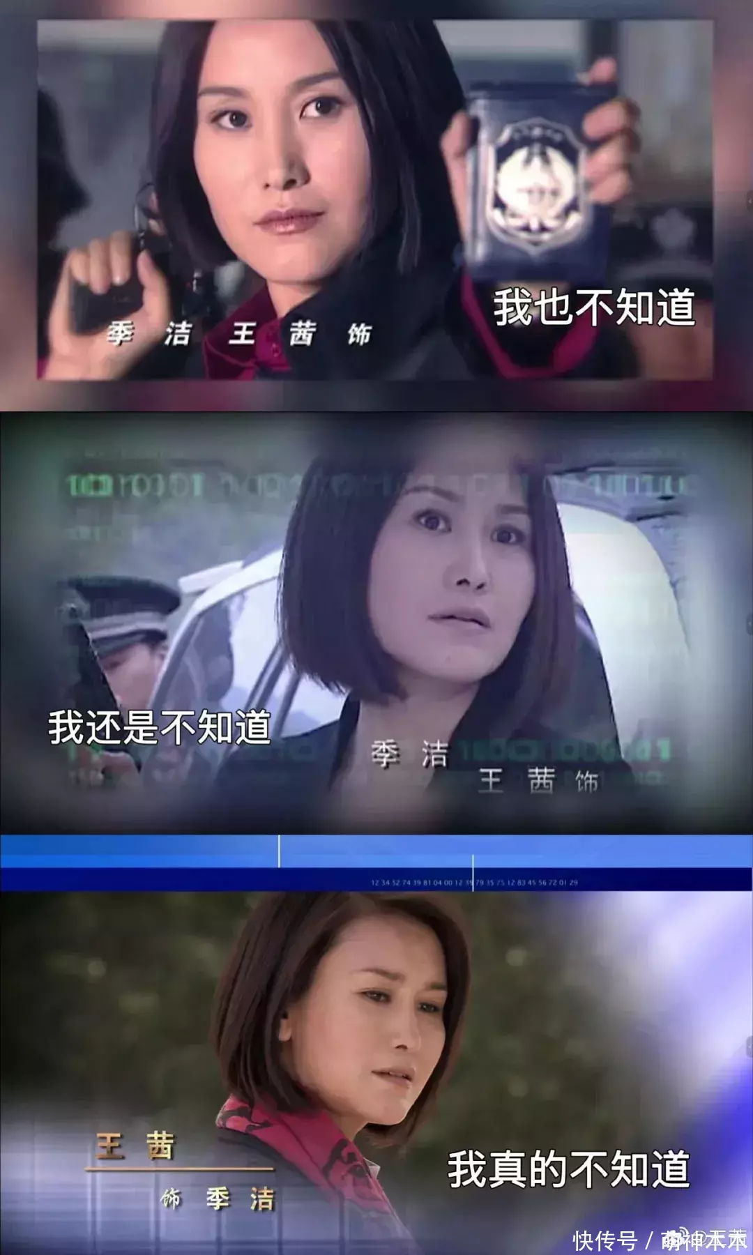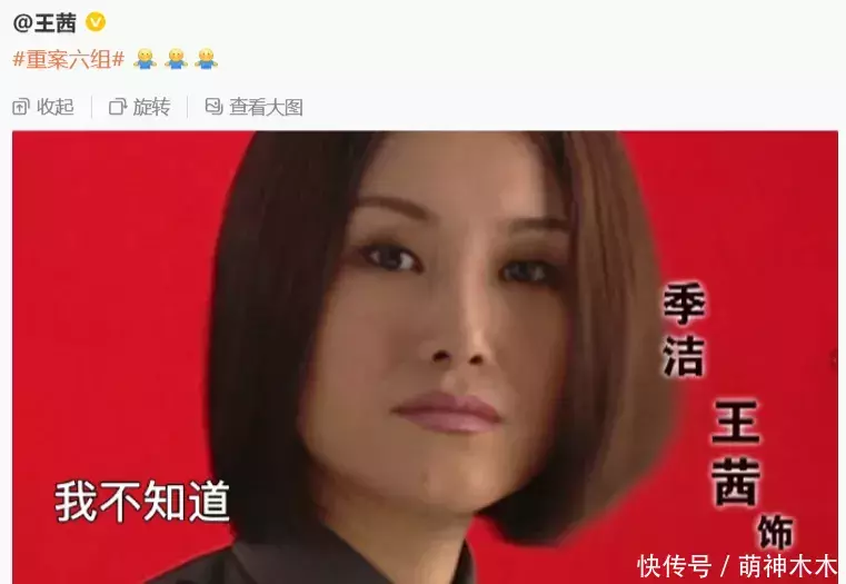 只见王茜带着“重案六组”话题发文,配上三个摊手表情,配图都是“我不知道、我也不知道、我还是不知道、我真的不知道”。